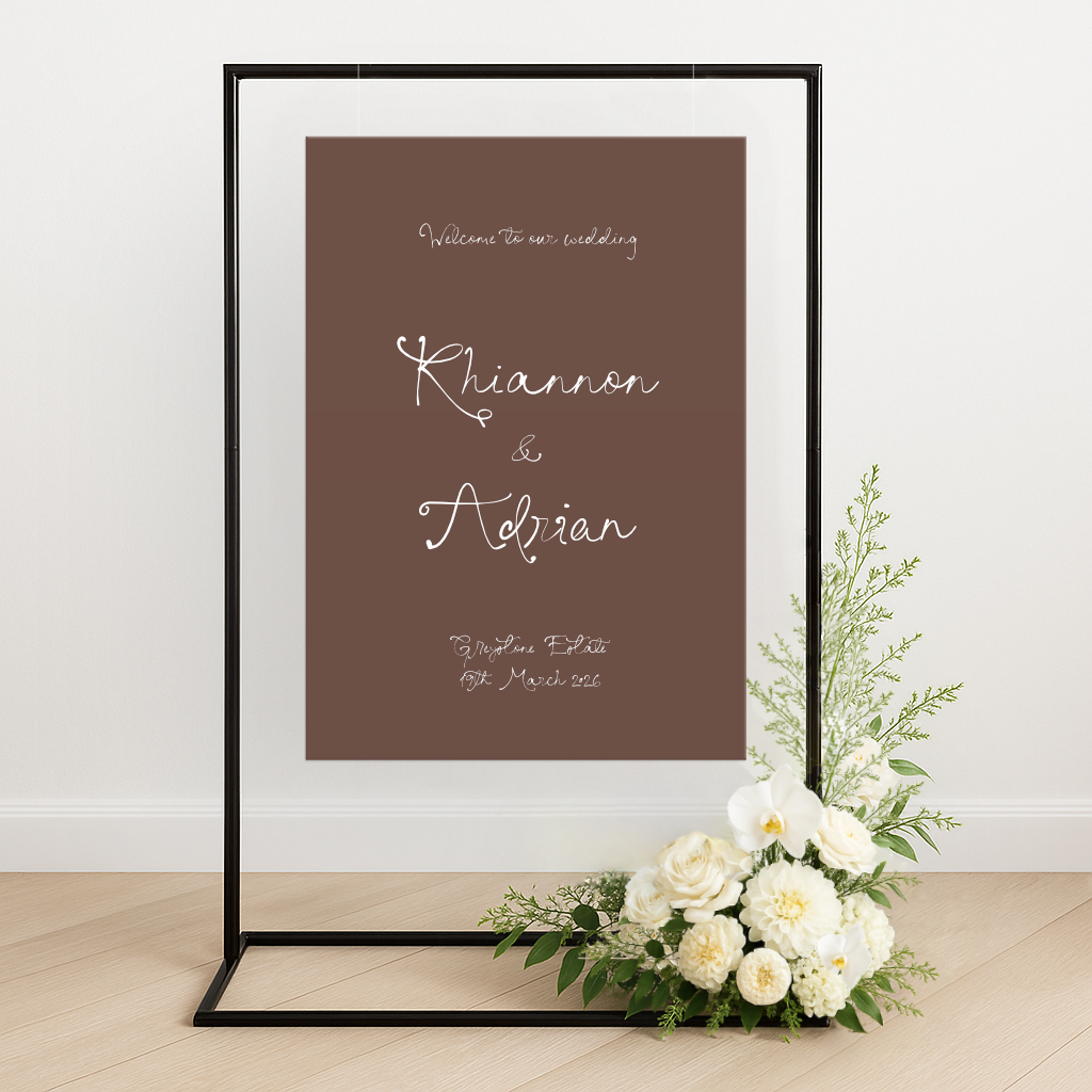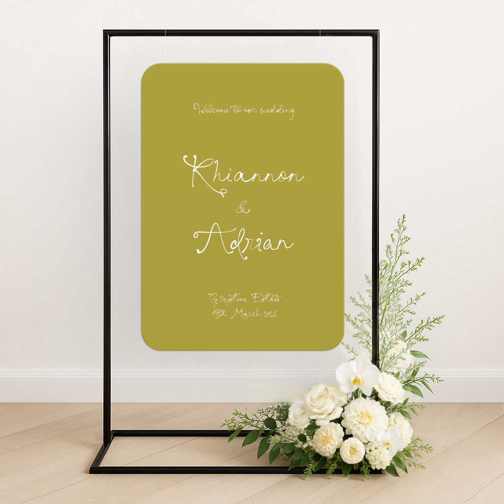 • Colour Customisation: Tailor your welcome sign to match your wedding palette with our flexible colour options. From soft neutrals and pastel tones to bold, vibrant hues, you’re in full control of your signage’s final look.