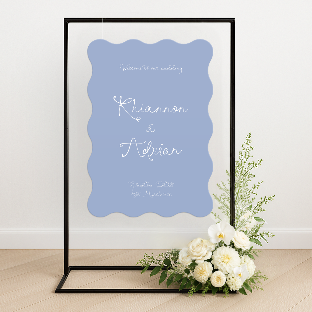 • Shape Selection: Choose from a range of die-cut shapes – including arches, waves, and rounded corners – to complement your wedding aesthetic and venue space. Create a welcome sign that’s uniquely yours and made to stand out.