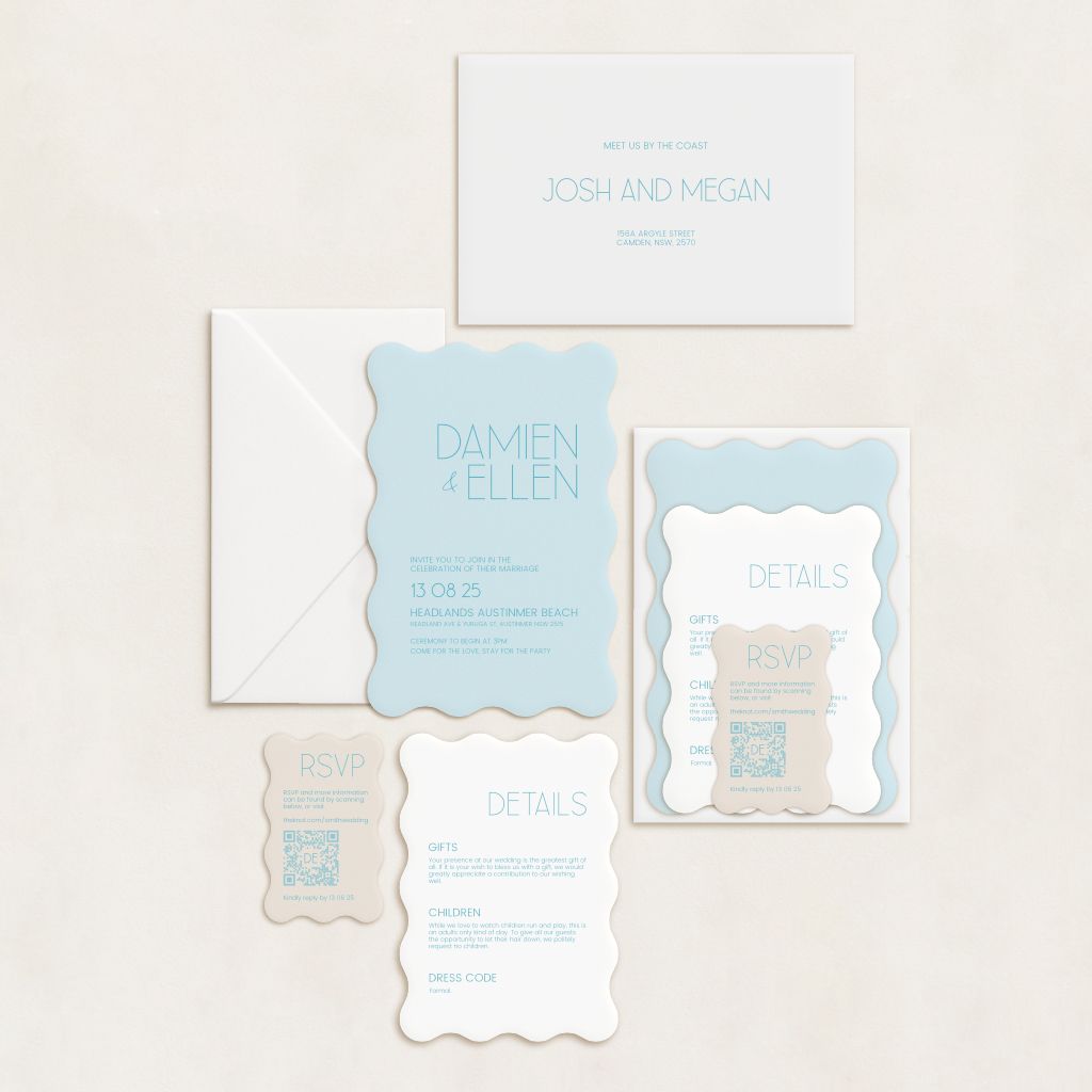 Our semi-custom 3-Card Invitation Suites are here to make your stationery dreams a reality. Designed to give you a polished, cohesive look without going fully custom, these suites are all about you – your colours, your shapes, your style.