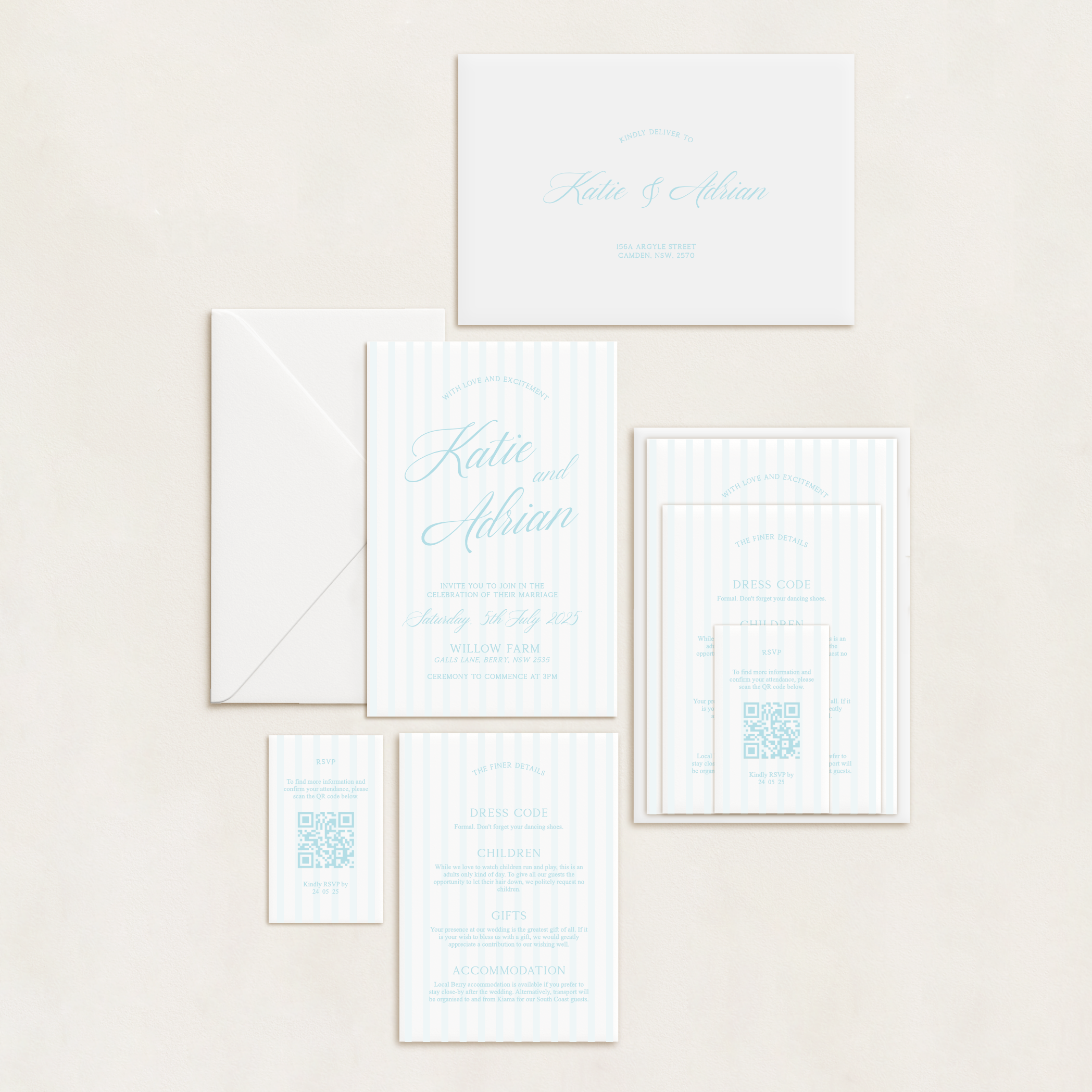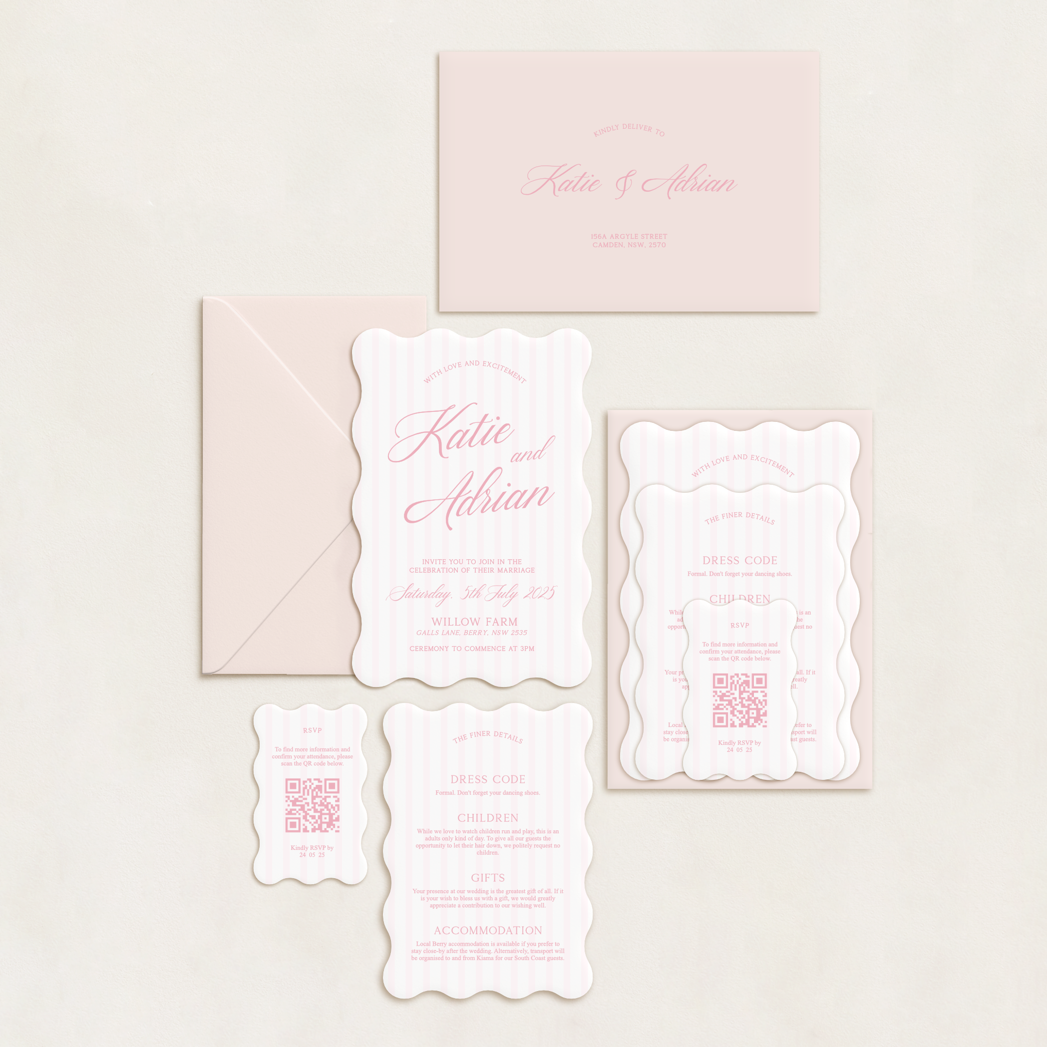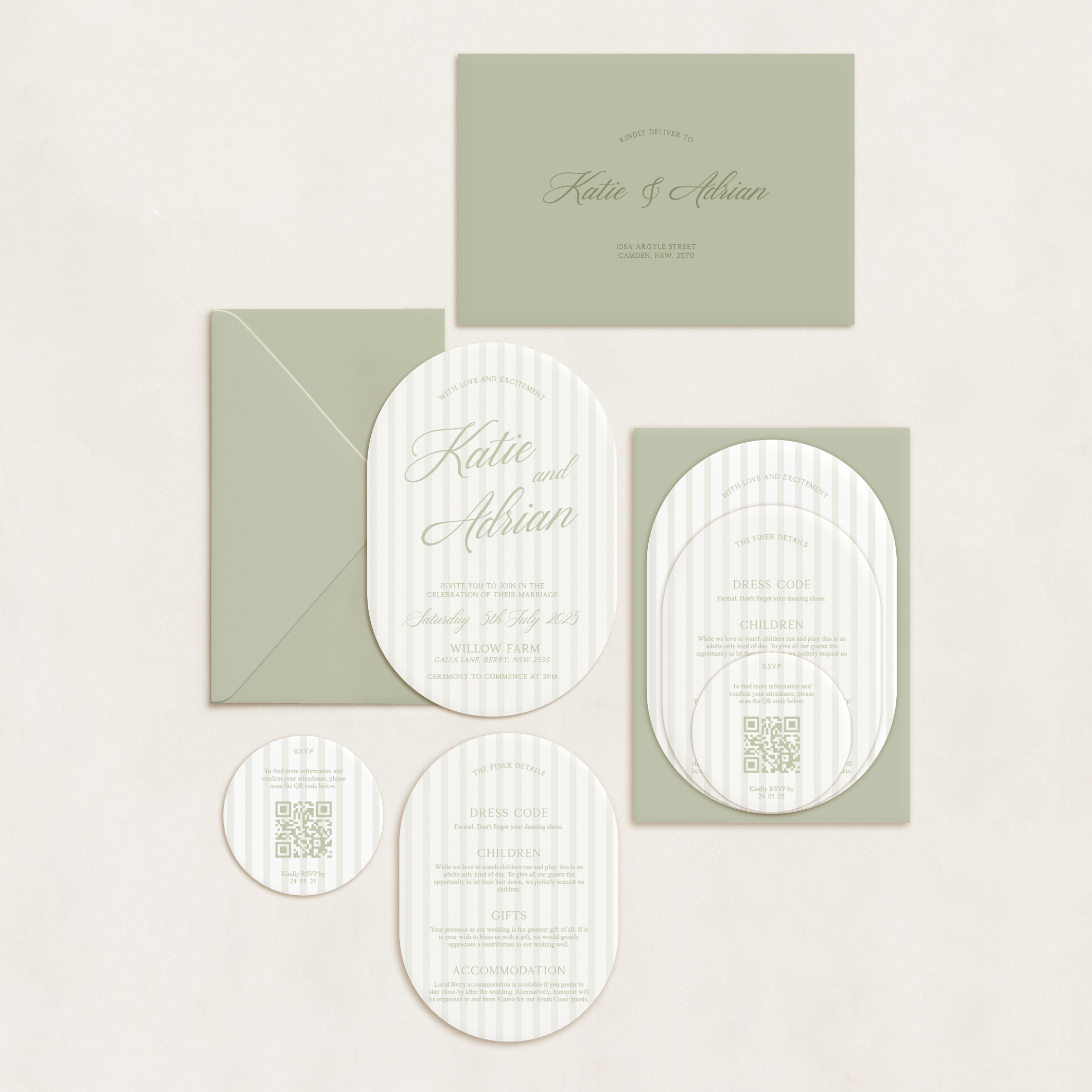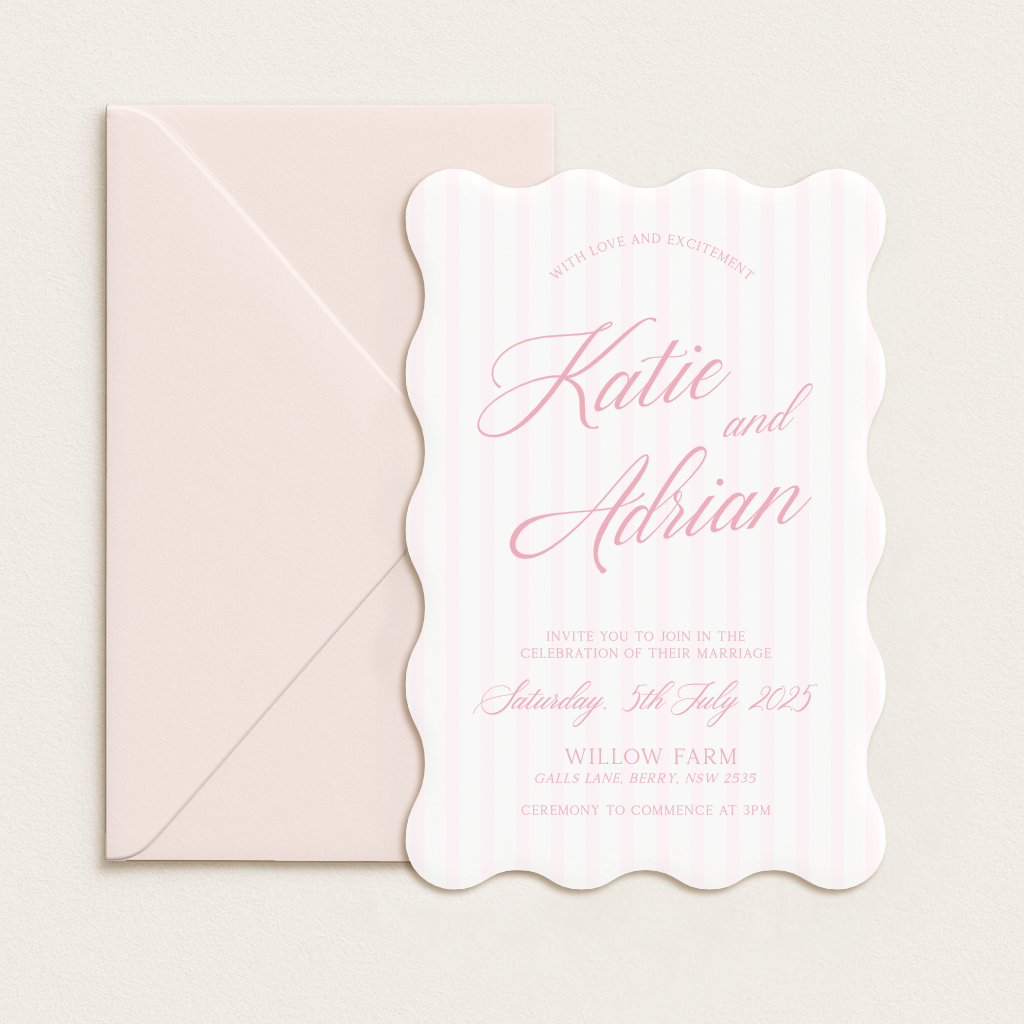 Our semi-custom 3-Card Invitation Suites are here to make your stationery dreams a reality. Designed to give you a polished, cohesive look without going fully custom, these suites are all about you – your colours, your shapes, your style.